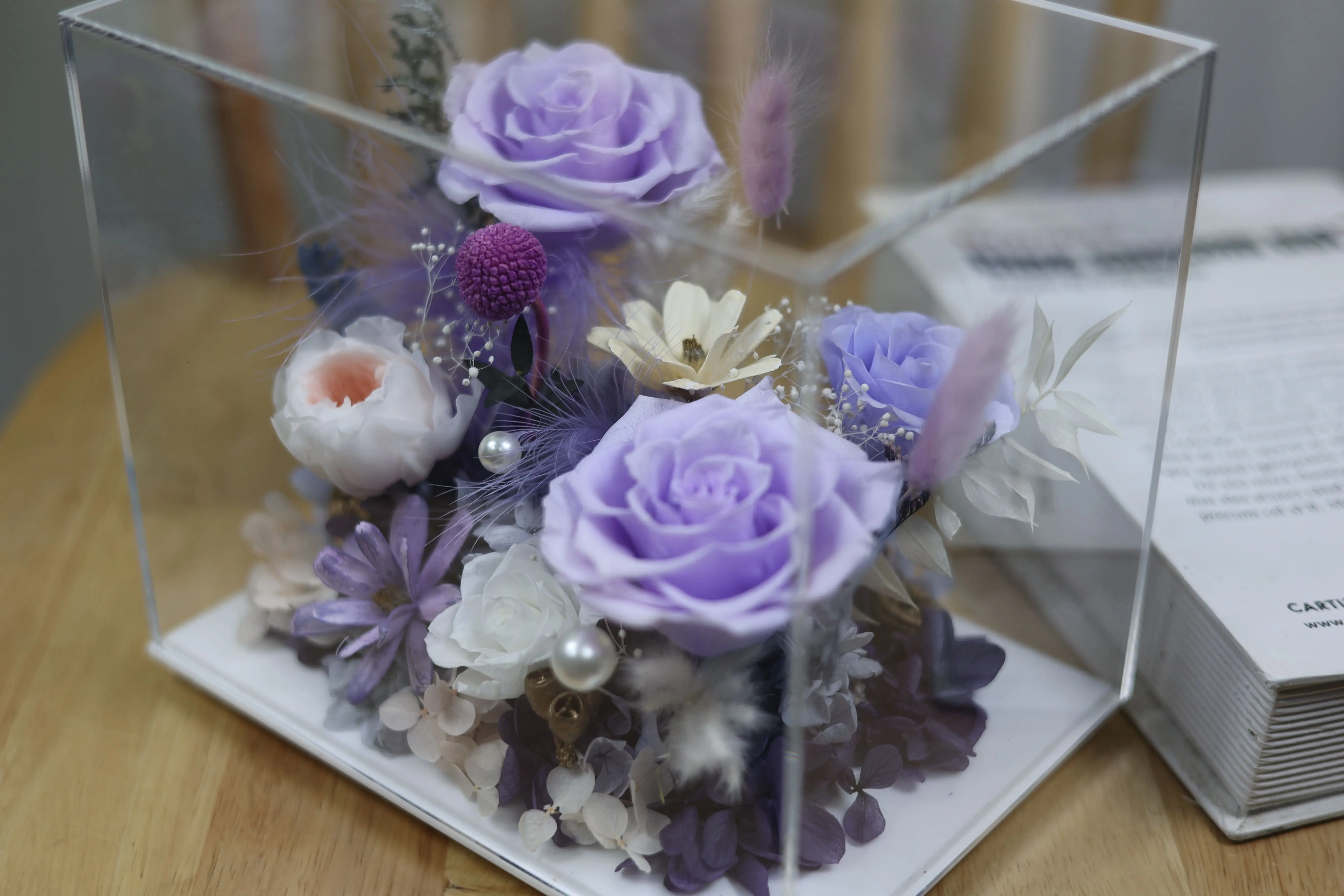 Our products include Preserved Flowers in Box. Preserved Flowers in Glass. Preserved Flowers in Acrylic. Flower Bouquet. Pampas